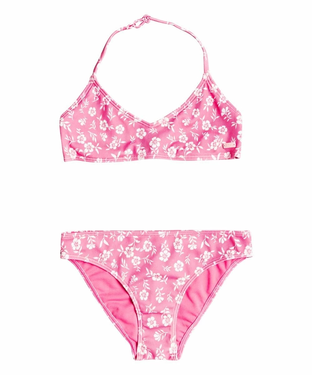 - Includes pink guava halter bikini top and bottoms (two pieces total)